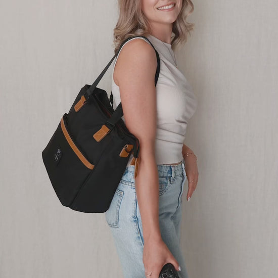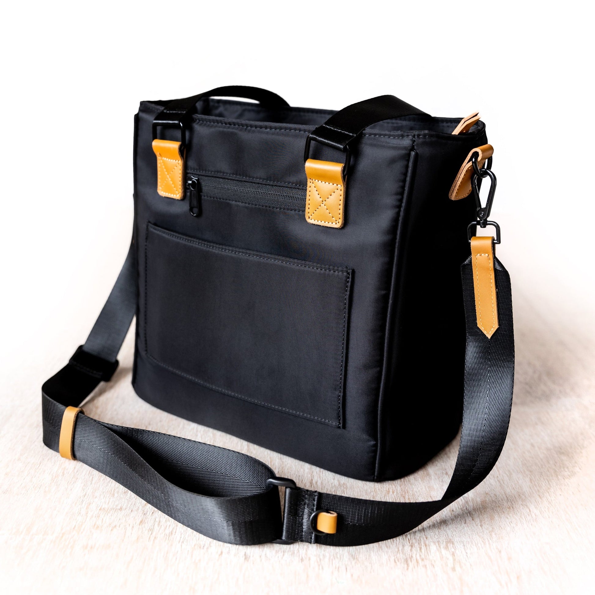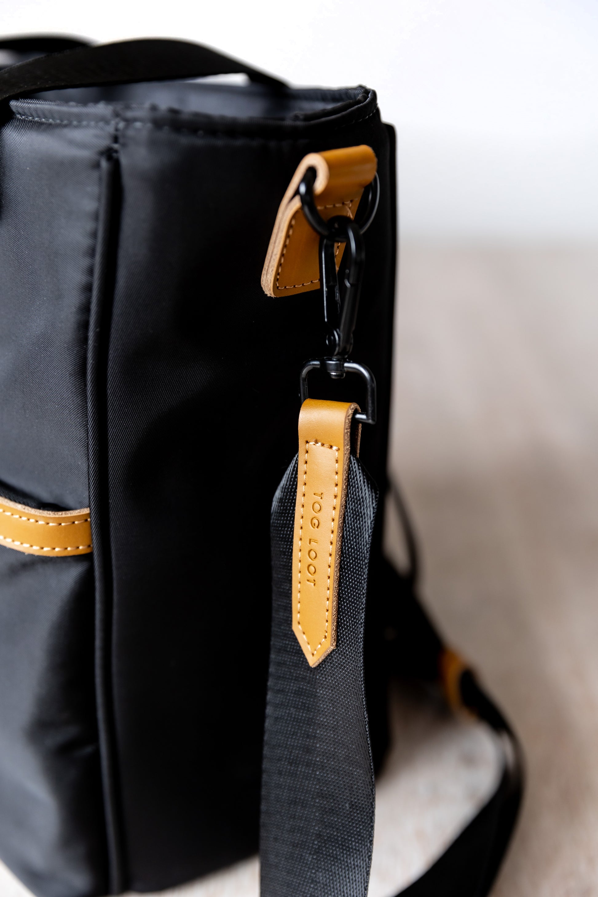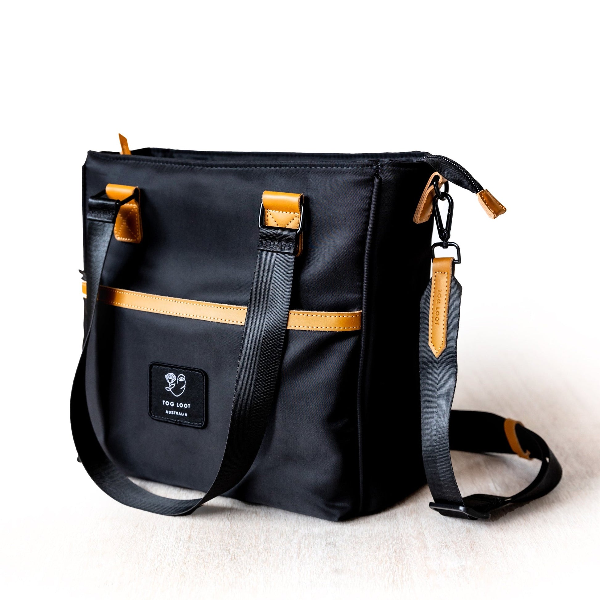 - A luggage pass-through sleeve on the back to securely attach your tote to your suitcase trolley handle - designed to perfectly pair with the Loot Case